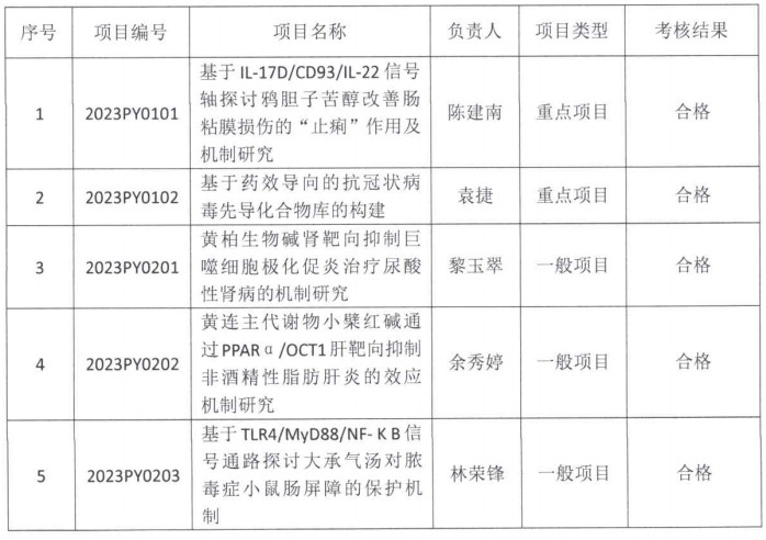 2023年度东莞广州中医药大学研究院院内培育项目中期考核结果公示